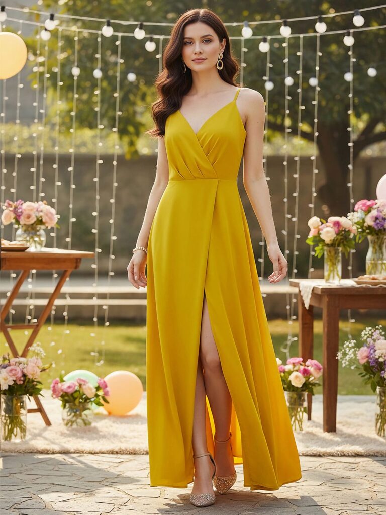 For evening events, shoulder strap maxi dresses with satin, silk, or chiffon fabrics look elegant and luxurious.